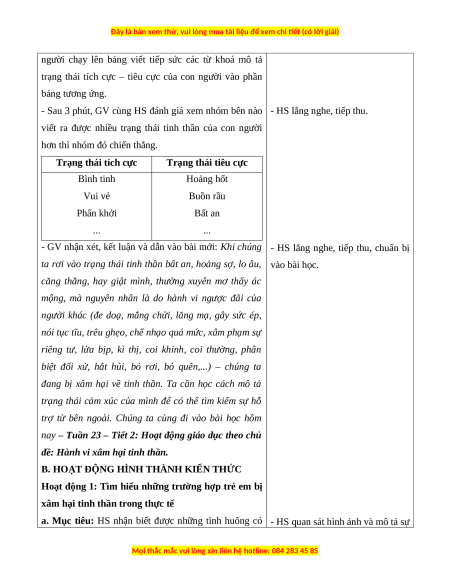 Tiết 2: Hoạt động giáo dục theo chủ đề: Hành vi xâm hại tinh thần