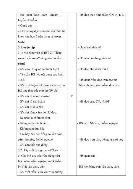 - GV chỉ vần oam trên bảng lớp, nói: oam - HS nhắc lại: oam, oăm