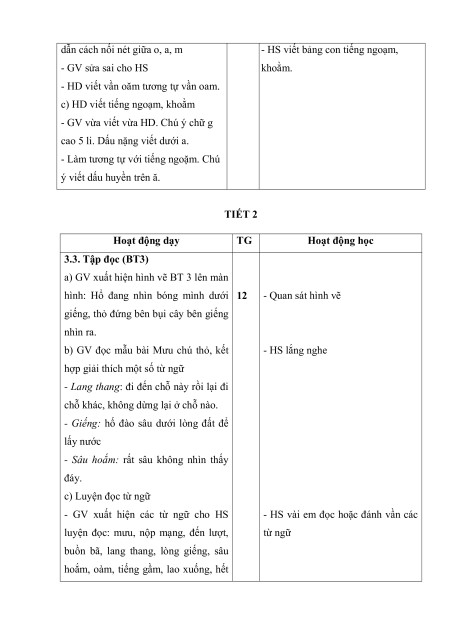 ý viết dấu huyền trên ă. TIẾT 2 Hoạt động dạy TG Hoạt động học 3.3. Tập đọc (BT3)