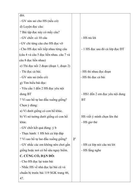 HS đọc theo các chữ do GV chỉ - GV chỉ từ nhồm nhoàm 8’ - GV chỉ từ sâu hoắm - HS đọc câu: CN, N, ĐT - GV chỉ từ dưa hấu