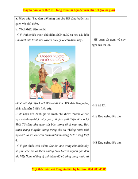 nguồn”, là tên của chủ điểm thứ năm trong SHS Tiếng Việt 4. - HS lắng nghe, tiếp thu.
