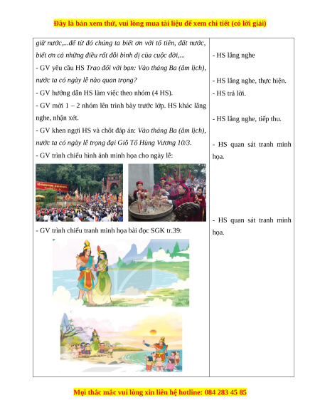nước ta có ngày lễ trọng đại Giỗ Tổ Hùng Vương 10/3. - HS quan sát tranh minh