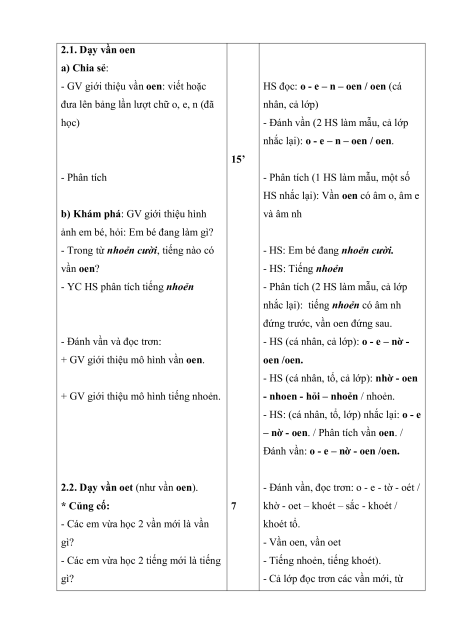 nhắc lại): o - e – n – oen / oen. 15’ - Phân tích