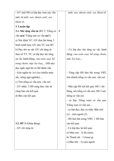 mới, từ mới: oen, nhoẻn cười; oet, khoét tổ. 3. Luyện tập