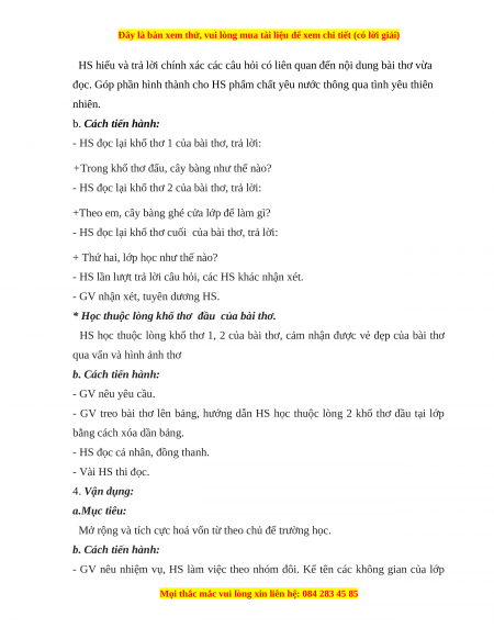 đọc. Góp phần hình thành cho HS phẩm chất yêu nước thông qua tình yêu thiên nhiên.