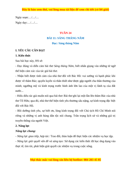 - Đọc đúng và diễn cảm bài thơ Sáng tháng Năm, biết nhấn giọng vào những từ ngữ