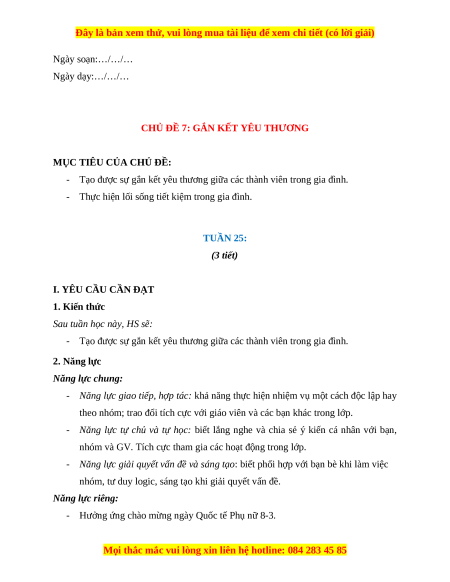 - Thực hiện lối sống tiết kiệm trong gia đình. TUẦN 25: (3 tiết)