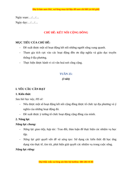 - Đề xuất được ý tưởng tổ chức hoạt động cộng đồng của mình. 2. Năng lực