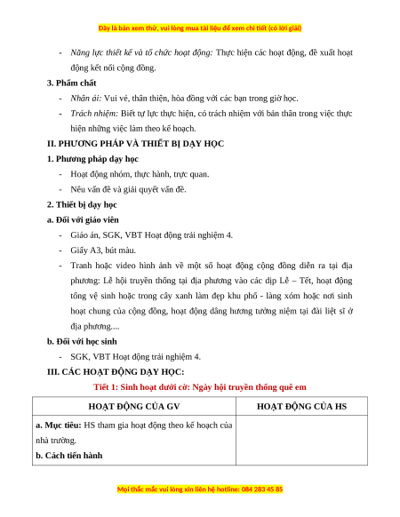 TÀI LIỆU BỘ BÁN CHẠY MÔN Hoạt động trải nghiệm