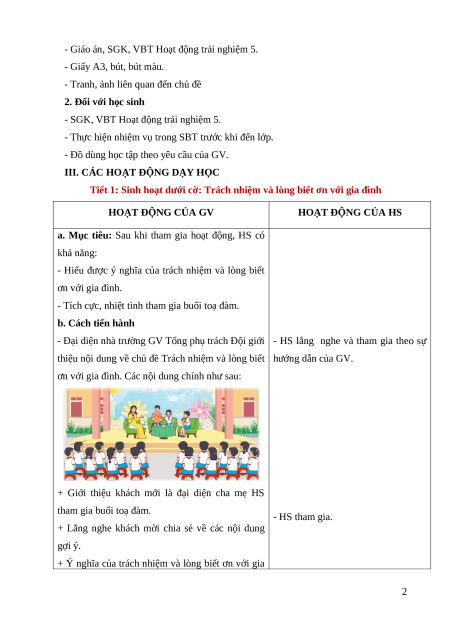 Tiết 1: Sinh hoạt dưới cờ: Trách nhiệm và lòng biết ơn với gia đình HOẠT ĐỘNG CỦA GV HOẠT ĐỘNG CỦA HS