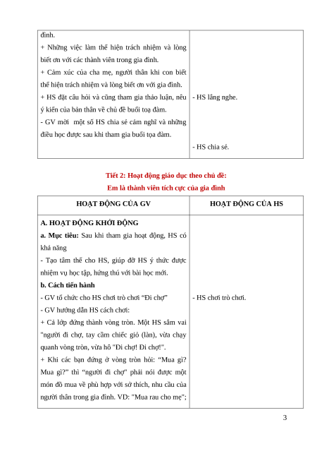 Em là thành viên tích cực của gia đình HOẠT ĐỘNG CỦA GV HOẠT ĐỘNG CỦA HS