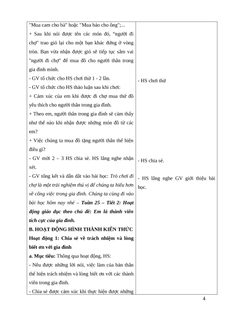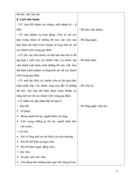 - Hiểu được ý nghĩa của trách nhiệm và lòng biết ơn với gia đình.