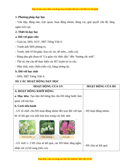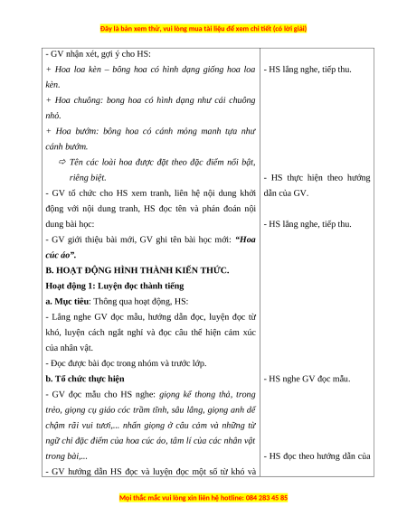 + Hoa loa kèn – bông hoa có hình dạng giống hoa loa - HS lắng nghe, tiếp thu. kèn.