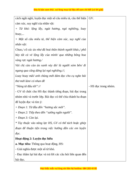 Hoạt động 2: Luyện đọc hiểu