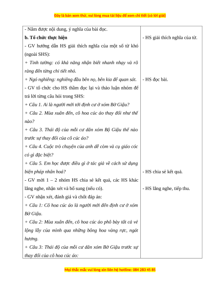 + Câu 1: Cô hoa cúc áo là người mới đến định cư ở xóm