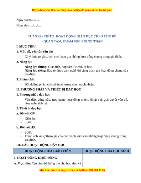 - QUAN TÂM, CHĂM SÓC NGƯỜI THÂN I. MỤC TIÊU