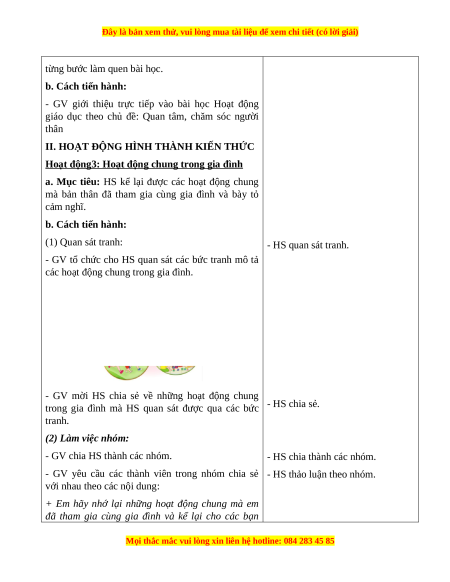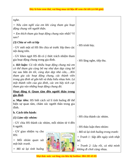 - Năng lực riêng: Bày tỏ được cảm nghĩ khi cùng tham gia hoạt động chung của gia đình. 3. Phẩm chất