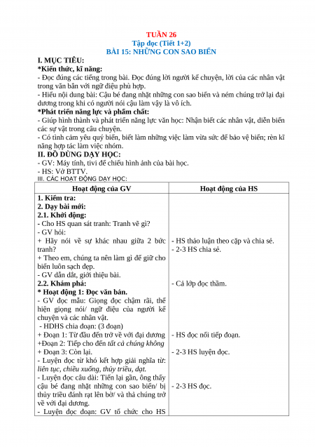 BÀI 15: NHỮNG CON SAO BIỂN I. MỤC TIÊU: *Kiến thức, kĩ năng:
