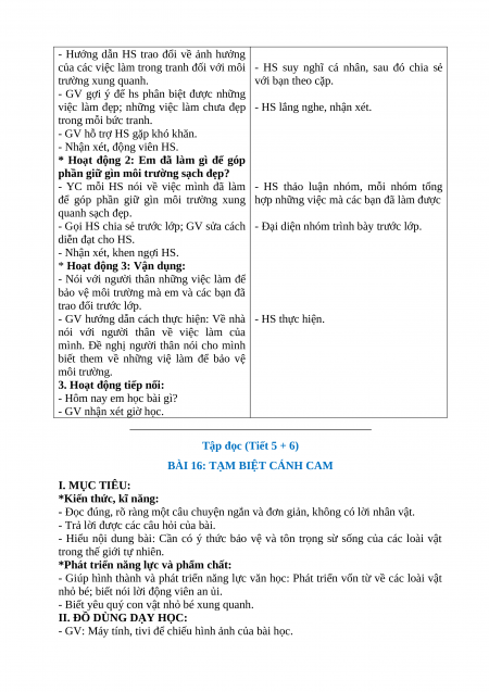 BÀI 16: TẠM BIỆT CÁNH CAM