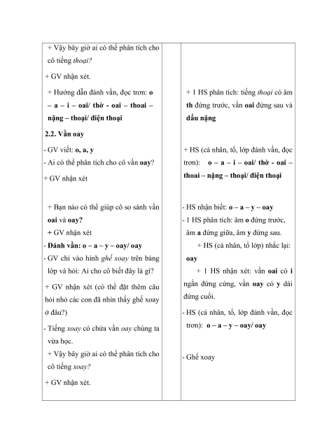 - Ai có thể phân tích cho cô vần oai? + GV nhận xét