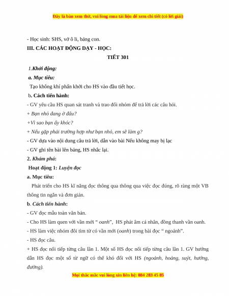 III. CÁC HOẠT ĐỘNG DẠY - HỌC: TIẾT 301