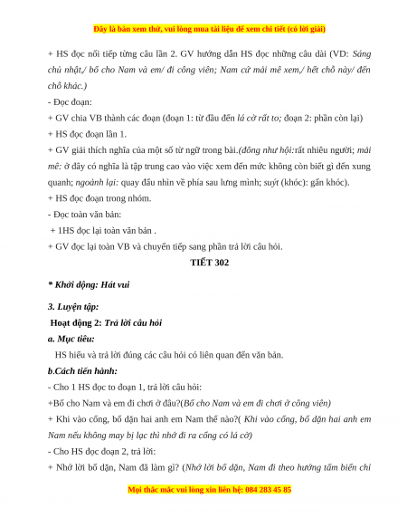 + GV đọc lại toàn VB và chuyển tiếp sang phần trả lời câu hỏi. TIẾT 302