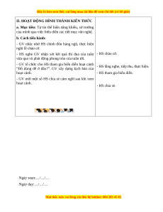 - GV mời một số HS chia sẻ cảm nghĩ sau khi xem hoạt cảnh. - HS chia sẻ. Ngày soạn:…/…/… Ngày dạy:…/…/…
