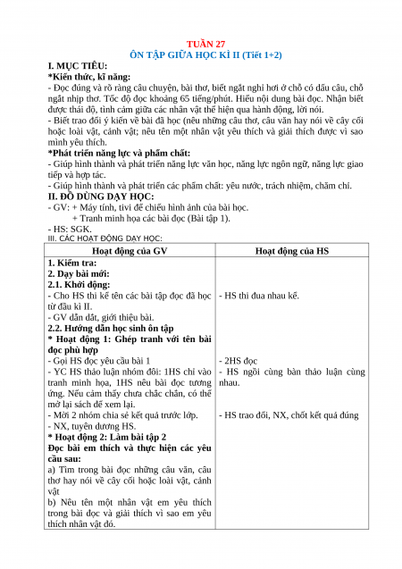 ÔN TẬP GIỮA HỌC KÌ II (Tiết 3+4) I. MỤC TIÊU: *Kiến thức, kĩ năng: