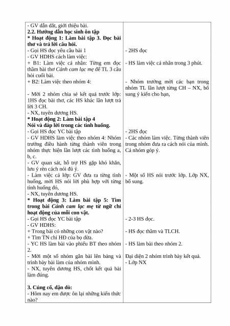 - Tìm được các từ ngữ chỉ hoạt động trong bài đọc, các từ ngữ chỉ sự vật, màu sắc