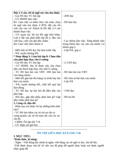 ÔN TẬP GIỮA HỌC KÌ II (Tiết 7+8)