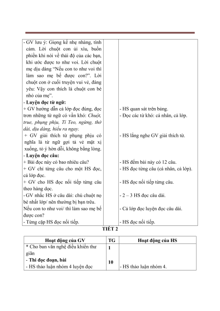 - Từng cặp HS đọc nối tiếp. - HS đọc nối tiếp. TIẾT 2 Hoạt động của GV TG Hoạt động của HS