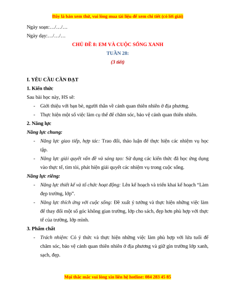 CHỦ ĐỀ 8: EM VÀ CUỘC SỐNG XANH TUẦN 28: (3 tiết)