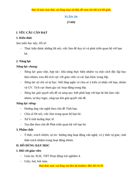 Giáo án Tuần 29 HĐTN lớp 4 Cánh diều
