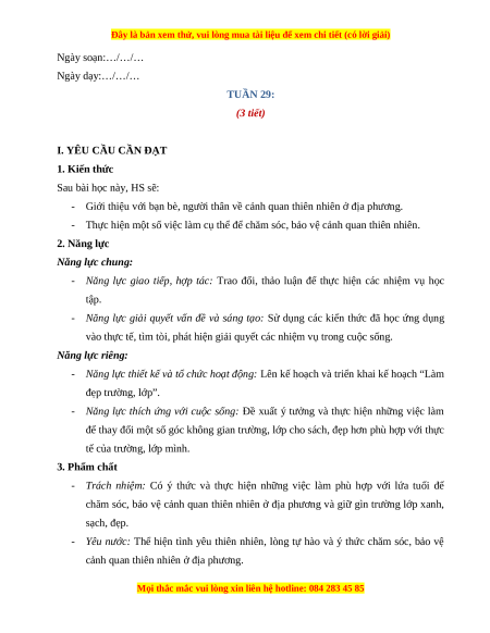 - Thực hiện một số việc làm cụ thể để chăm sóc, bảo vệ cảnh quan thiên nhiên. 2. Năng lực
