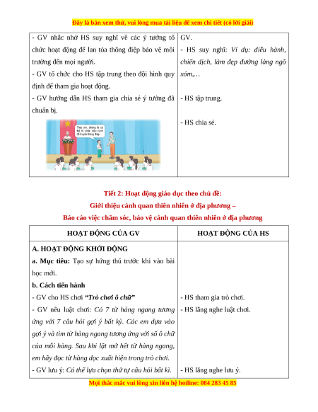 Tiết 2: Hoạt động giáo dục theo chủ đề: