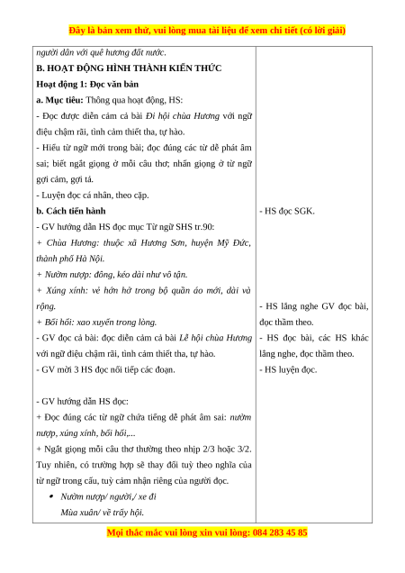 - Đọc đúng và diễn cảm bài thơ Đi hội chùa Hương, biết nhấn giọng vào những từ ngữ thể
