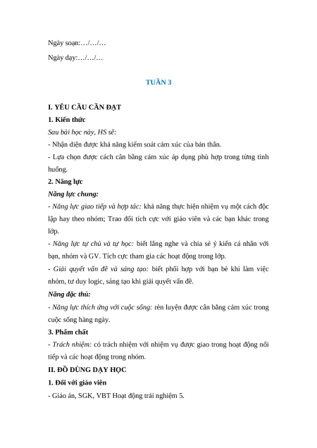 Ngày soạn:…/…/… Ngày dạy:…/…/… TUẦN 3