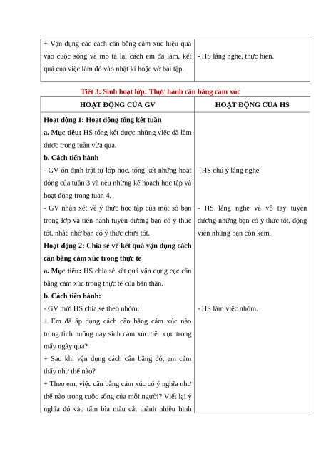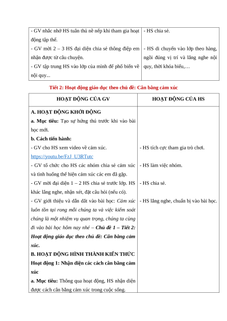 Tiết 2: Hoạt động giáo dục theo chủ đề: Cân bằng cảm xúc HOẠT ĐỘNG CỦA GV HOẠT ĐỘNG CỦA HS