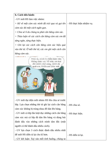 được cách cân bằng cảm xúc trong cuộc sống. b. Cách tiến hành: