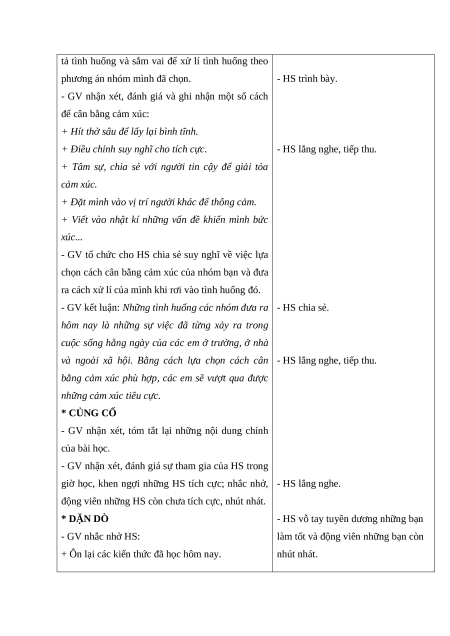 - Lựa chọn được cách cân bằng cảm xúc áp dụng phù hợp trong từng tình huống. 2. Năng lực