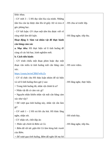 Hoạt động 1: Nhận diện các cách cân bằng cảm xúc