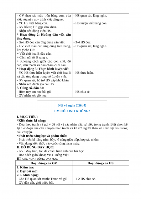 __________________________________________ Tập viết (Tiết 3) CHỮ HOA B I. MỤC TIÊU: *Kiến thức, kĩ năng: