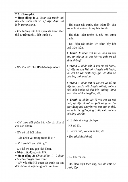 + Tranh 2: nhân vật là Voi em và hươu,