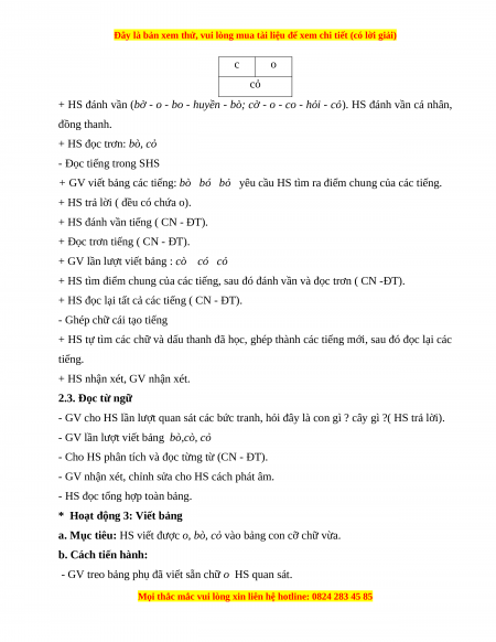 a. Mục tiêu: HS đọc được chữ O o, tiếng, từ ngữ có chứa o và dấu thanh hỏi. b Cách tiến hành: 2.1. Đọc âm