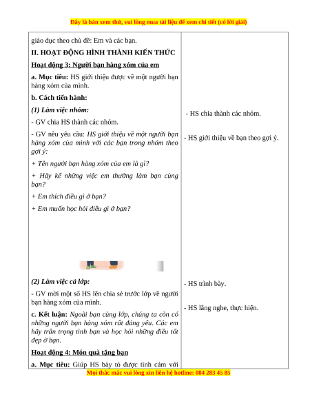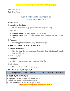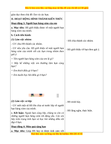 - Vấn đáp, động não, trực quan, hoạt động nhóm, đóng vai, giải quyết vấn đề, lắng nghe tích cực. 2. Thiết bị dạy học a. Đối với GV - Giáo án. - SGK. b. Đối với HS: - SGK.