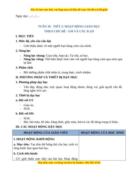 TUẦN 30 - TIẾT 2: HOẠT ĐỘNG GIÁO DỤC