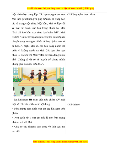 - GV nhận xét, khuyến khích HS đã tích cực tham - HS lắng nghe và tiếp thu. gia chia sẻ.