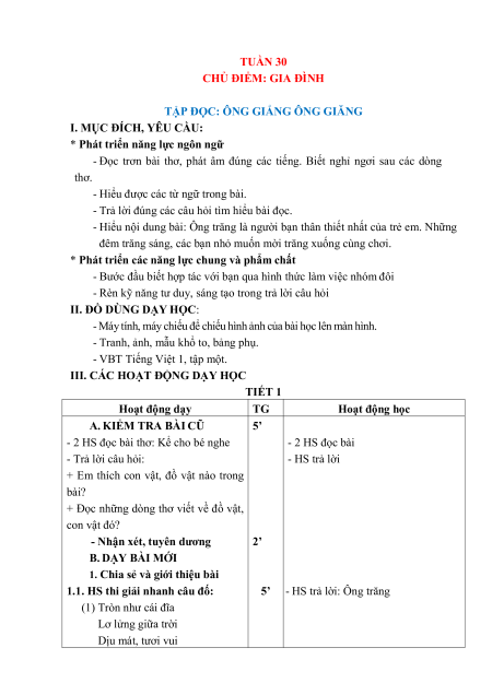 Giáo án Tuần 30 Tiếng việt lớp 1 Cánh diều