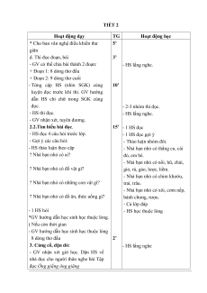 - Đọc nối tiếp cá nhân – mỗi HS 2 dòng thơ) - Đọc bài nhóm đôi TIẾT 2 Hoạt động dạy TG Hoạt động học