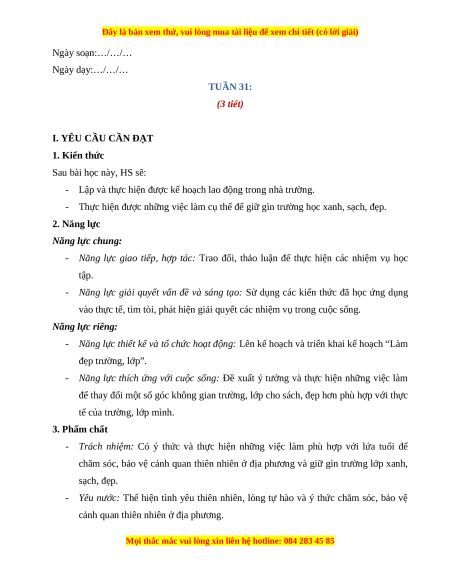 - Thực hiện được những việc làm cụ thể để giữ gìn trường học xanh, sạch, đẹp. 2. Năng lực